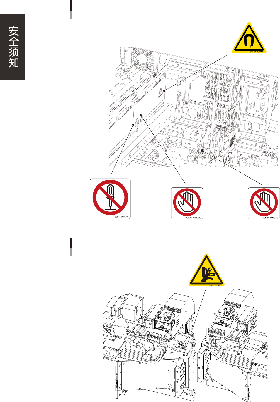 xxvi ■ 标贴张贴位置 警告标贴 内部 95203-N5-00 警告标贴 左右横梁之间 95204-N5-00