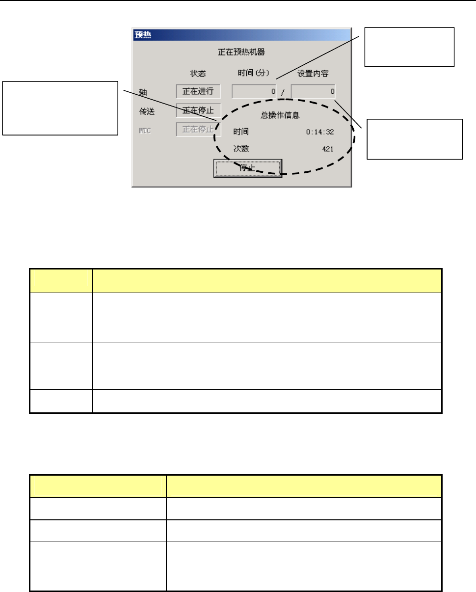 表2-4-3-1 预热运行内容