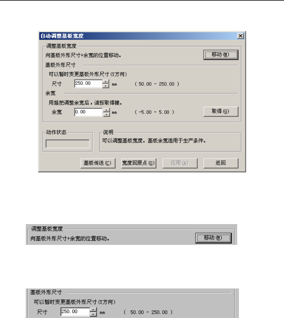 将传送宽度移动到符合基板外形尺寸+余宽的宽度。运行时的传送宽度的值,适用以下项目的设