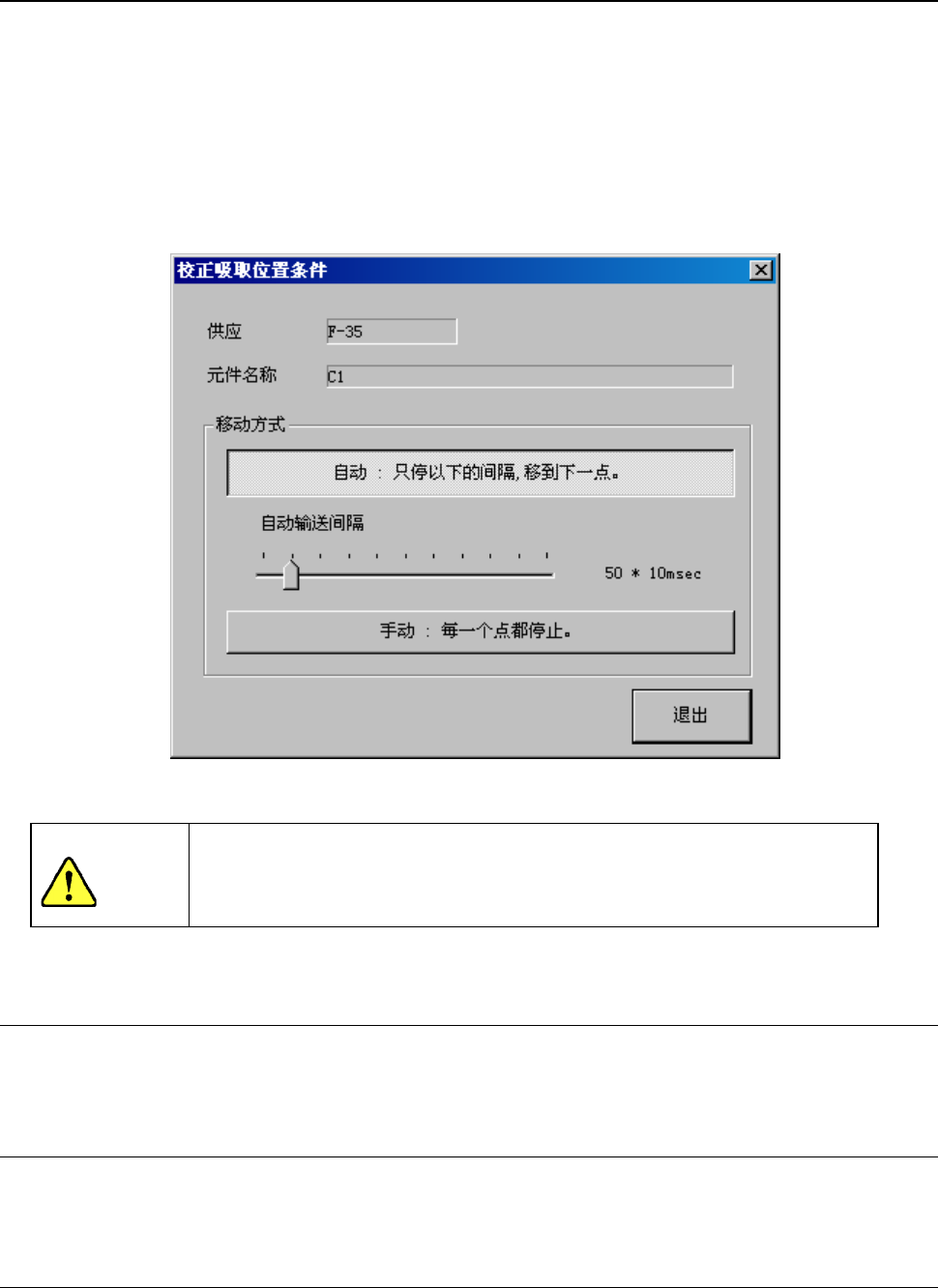 单击“中断”后,即进入吸嘴更换动作。为了避免人身伤害,在运行