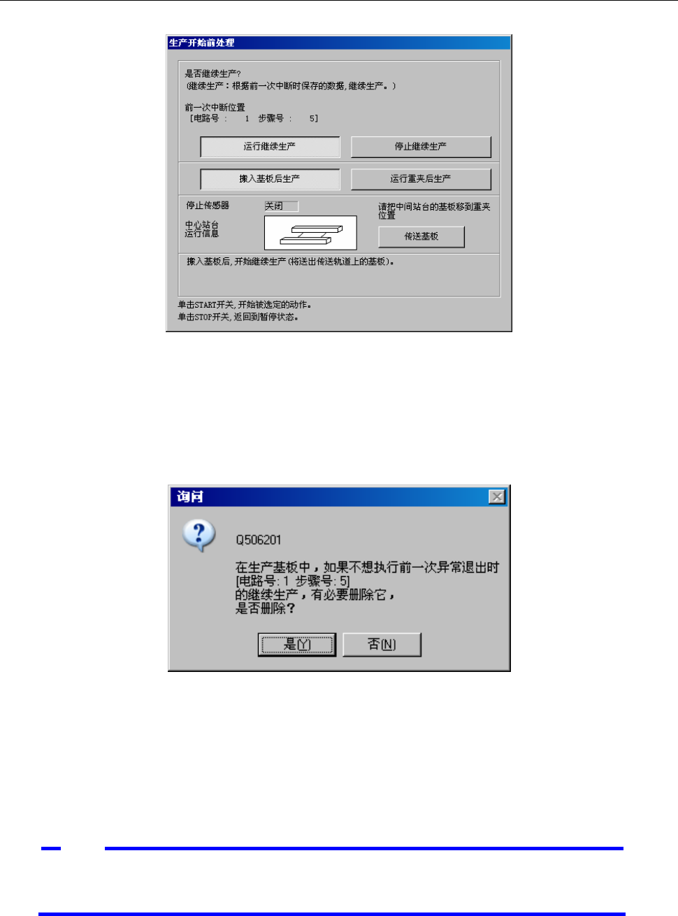 选择“是”时,继续生产数据即被删除,不能执行上次异常终止时的“继续生产”。