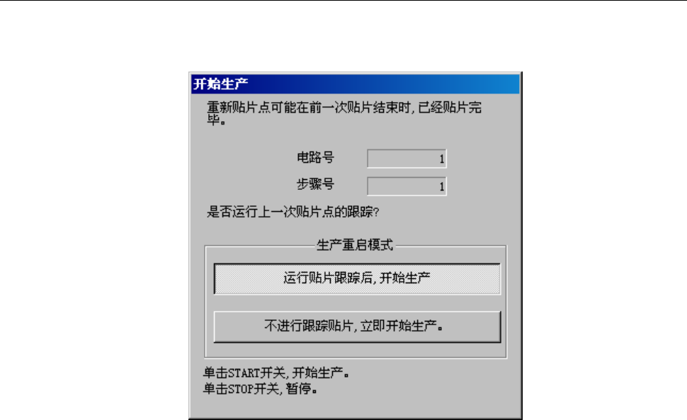 请目检确认贴片跟踪的生产开始点(生产条件 “重启位置”项所指定的位置)是否已经贴片。