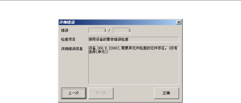 进行生产程序的检查后,若生产程序中有错误或警告,则可以选择“详细错误”按钮。按此按钮,