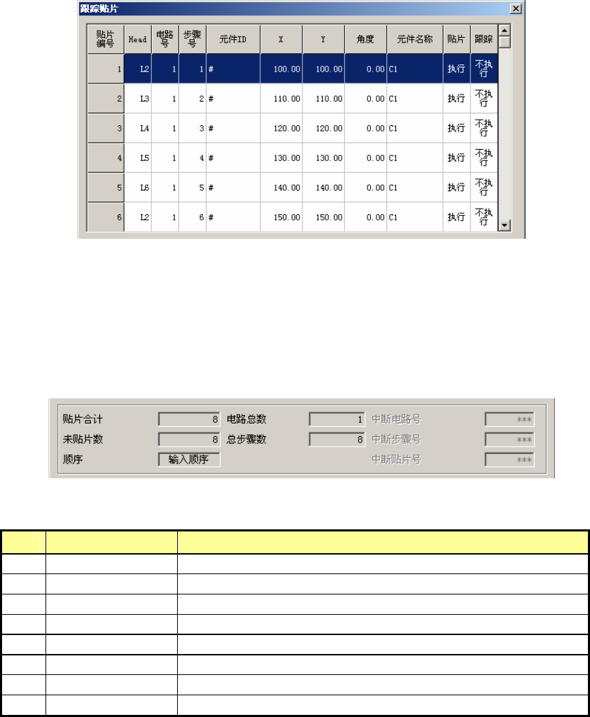 7 中断步骤号 有继续生产文件时,贴片被中断的步骤号。