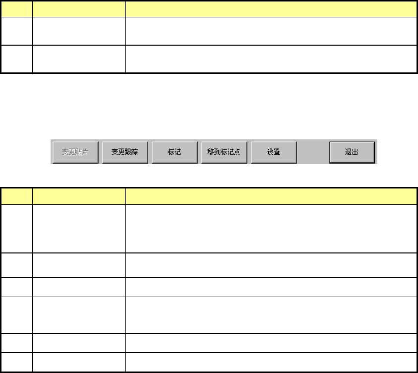 第 1 部 基本篇 第 2 章 生产 2-135 (3) 跟踪方法 选择连续跟踪和单独跟踪。 No. 项目 内容□ 1 连续跟踪 根据下一项说明的跟踪 设定,从跟踪开始位置起,对 贴片点一 列表的跟踪贴片点进行连续跟踪。 2 单独跟踪 对贴片点列表的当前贴片点进行贴片跟踪。 该单独贴片跟踪与是否进行跟踪的指定无关,单独进行跟踪。 (4) 按钮 按照选择的按钮内容运行。 图2-12-2-2-4 按钮 No. 项目 内容□ 1 变更贴片 对…