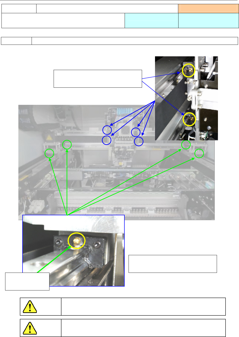第 1 部 基本篇 第 3 章 维护 3-27 1) スクリューシャフト 左右 1 本ずつ ①全面に黄油を塗布して下さい。 1) ガイドシャフト 左 2 本、右 3 本 ①全面に黄油を塗布して下さい。 1)请在滑动部位涂上润滑油。 注油项目 3-4-2 传送螺旋轴(轴) 实施频度 :每月 使用工具 :毛刷 使用润滑油 : 6459 润滑油 N 注油项目 3-4-3 传送导轴 实施频度 :每月 使用工具 :毛刷 使用润滑油 : 6459 …