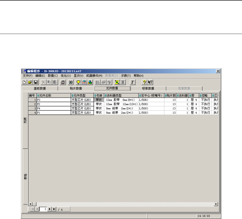 “元件数据”,是指对“贴片数据”中输入的“元件名称”输入详细的信息数据。