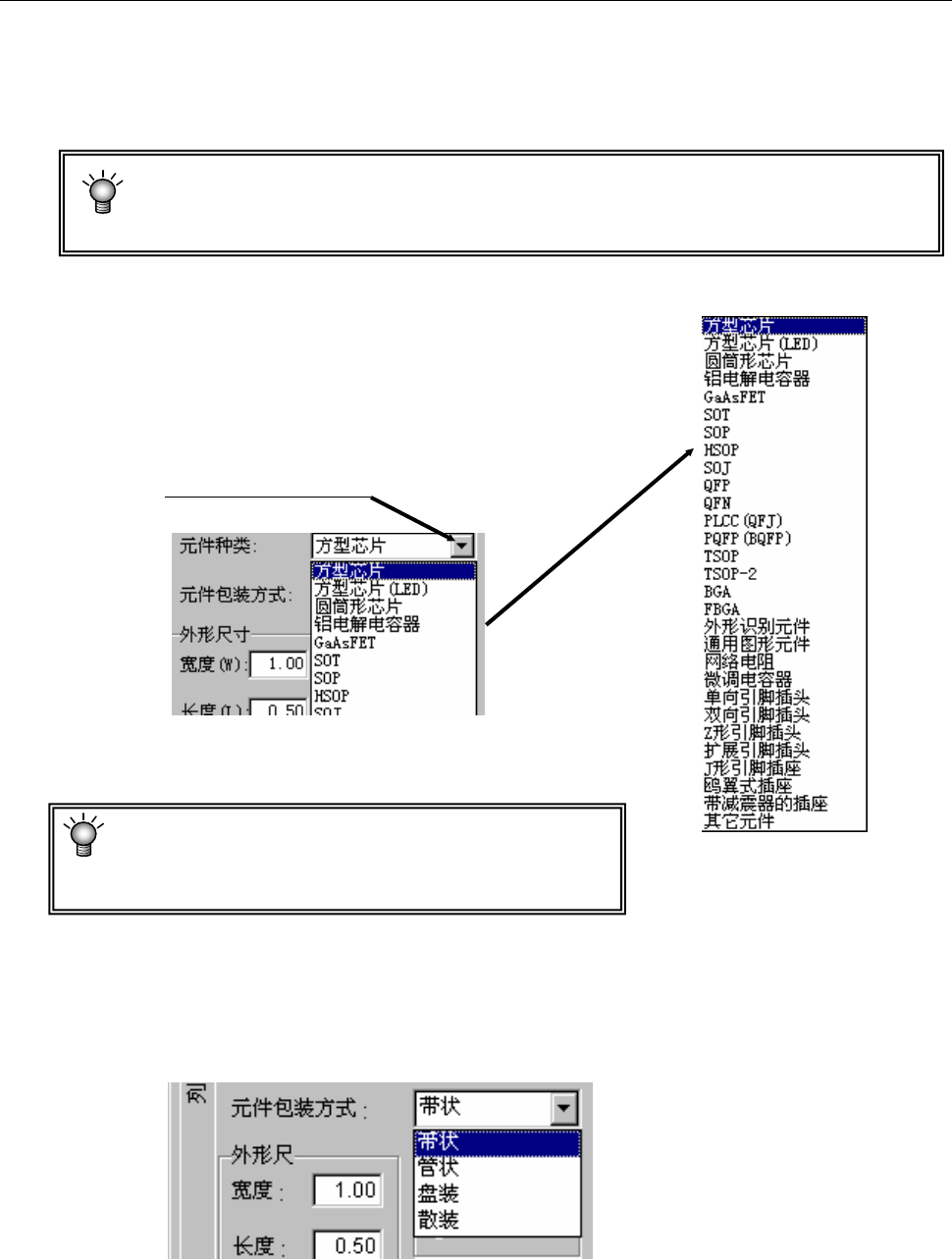 需要进行变更时,请从下拉式列表中选择元件包装方式。