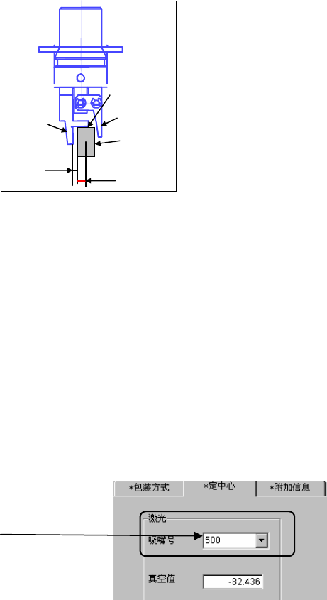 ① 抓取位置: “Y”项,输入元件中心与抓取吸嘴固定侧手臂抓取面中心的偏移值(见