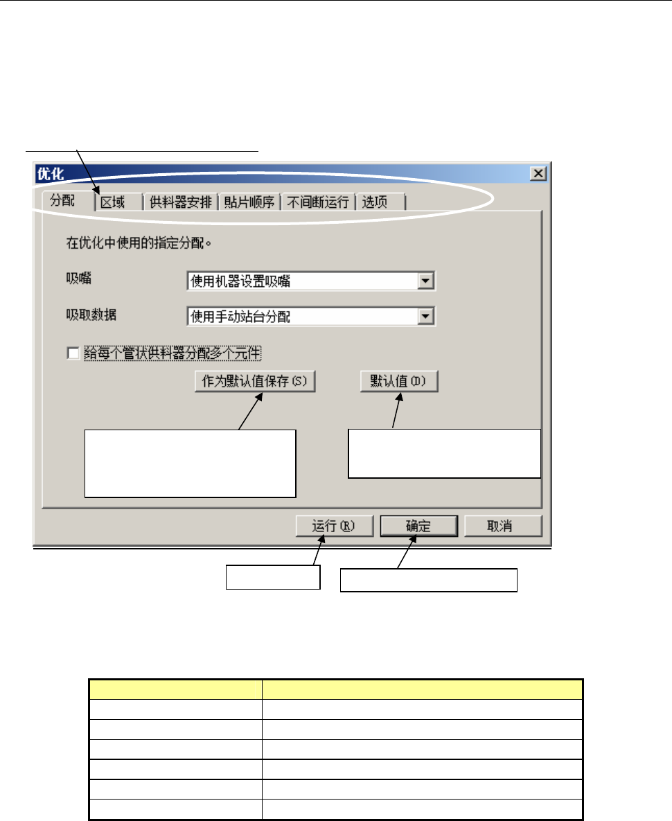 在菜单栏上点击“优化”/“优化”后,可显示“分配选项”画面。