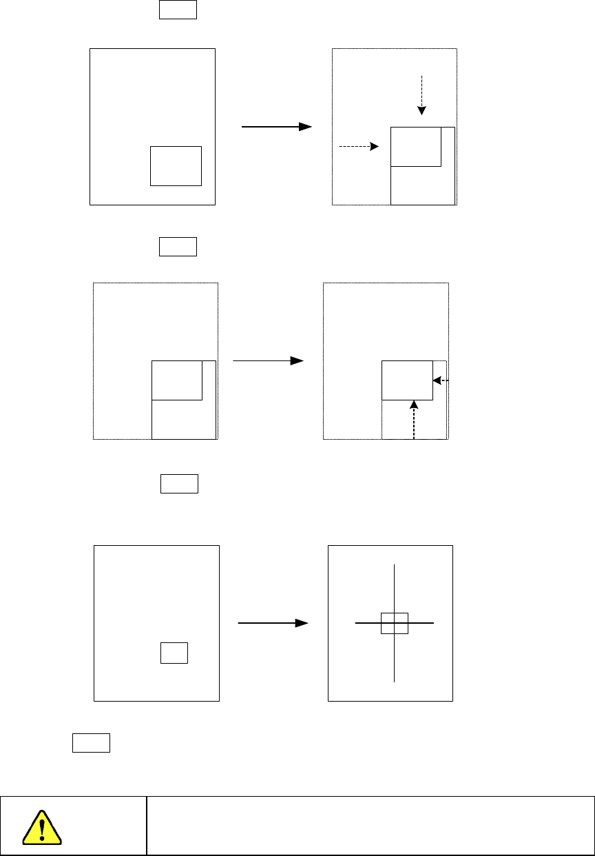 第 1 部 基本篇 第 4 章 制作生产程序 4-127 使用XY轴用的轴驱动键,来移动窗口框的上面、左面、下面及右面。 先移动上面、左面,按下 ENTER 键。 再移动下面、右面,按下 ENTER 键。 移动下面、右面后,按下 ENTER 键,摄像机会移动,方形窗口的中心变为原来十字光标的中心, 方形窗口变回十字光标。 在此,按下 ENTER 键,就可获得坐标值。 为了避免人身伤害, 在 HOD 操作过程中, 切勿将手放入装置内部, …