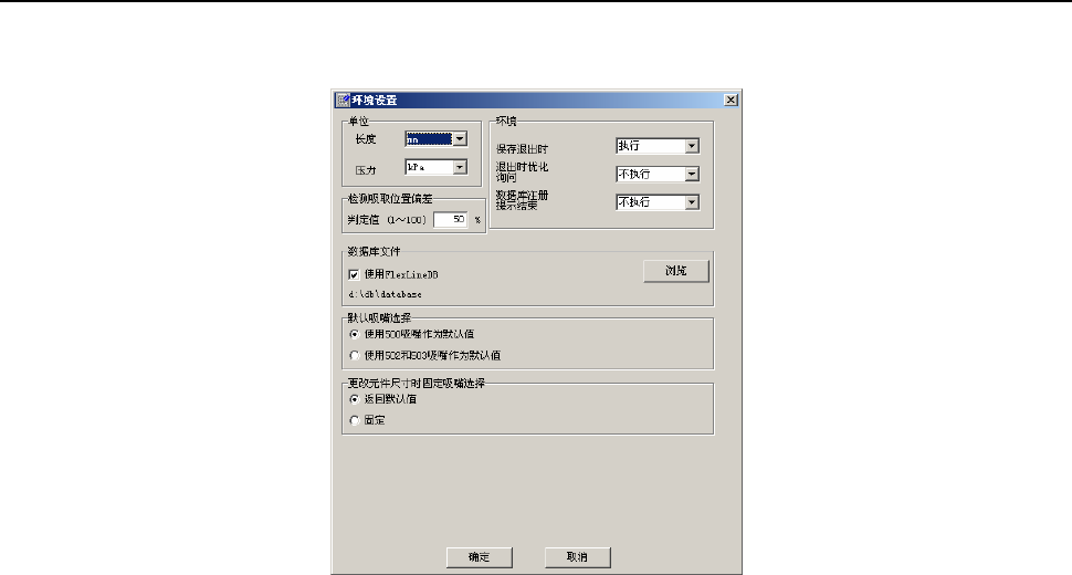 第 1 部 基本篇 第 4 章 制作生产程序 4-141 4-5-3 设置环境 设置编辑程序的环境。 从菜单栏中选择“文件”/“环境设置”,显示设置画面。 图4-5-3-1 环境设置 1) 单位 选择编辑时的长度、压力的显示单位。 ●长度 … 从 mm 、 1/100mm 、 inch 中选择。 ●压力 … 从 kPa 、级别中选择。 2) 环境 ① 保存退出时(※本功能仅限于 EPU。 ) ●执行:在下一次启动编辑程序时再次显示以下的…