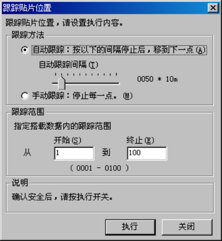 设置所有跟踪条件,准备完成后,按下<开始>开关或“执行”。