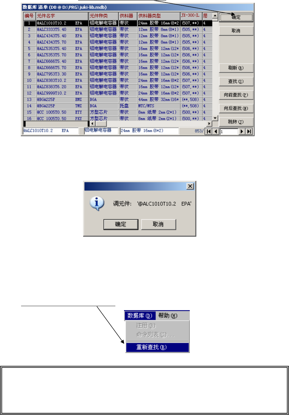 ※ 重新查找:在数据库和贴片数据中核对元件名,如果有相同的元件名,则从数据库中调出元