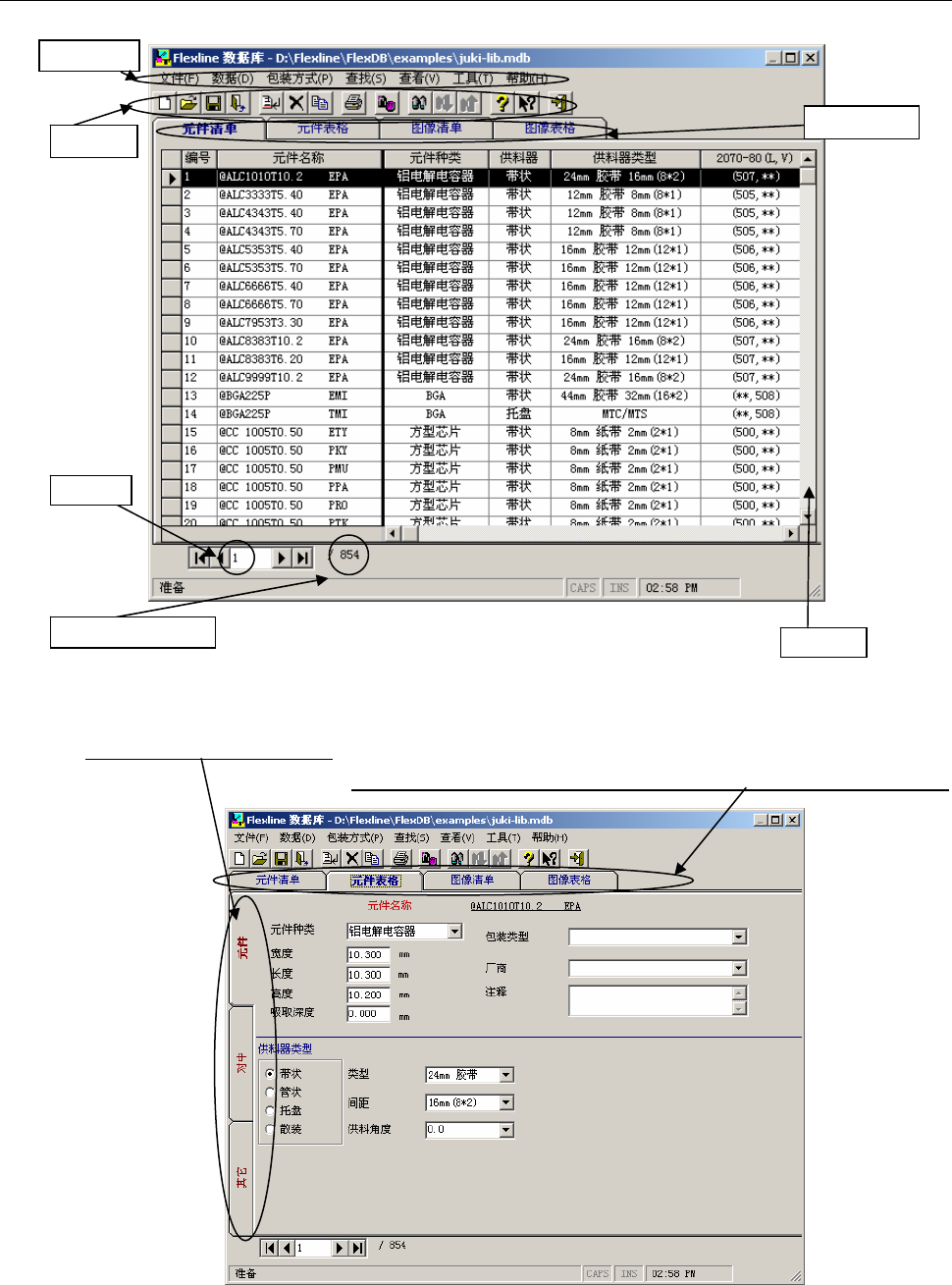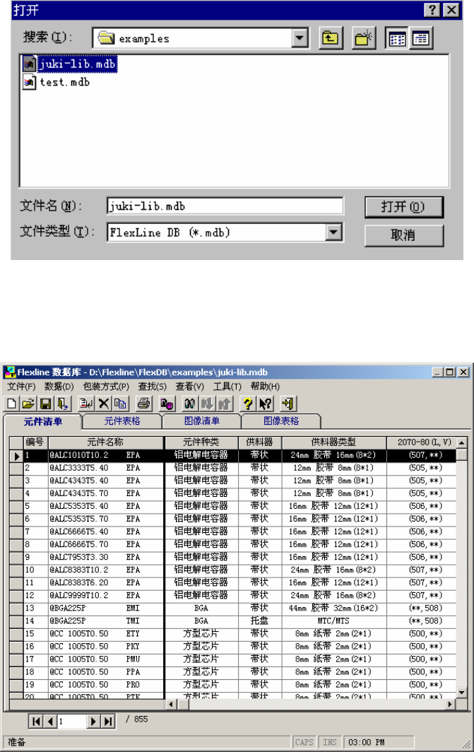 画面上消失,新数据库文件的数据会显示在Flexline数据库窗口的元件清单上。