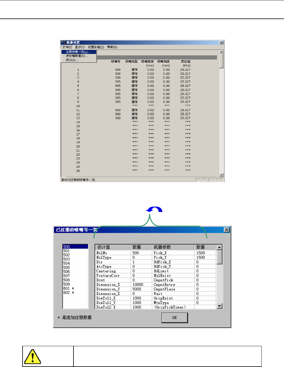 可在“已注册吸嘴编号一览(图7-3-1-2)”中确认已追加的吸嘴编号。