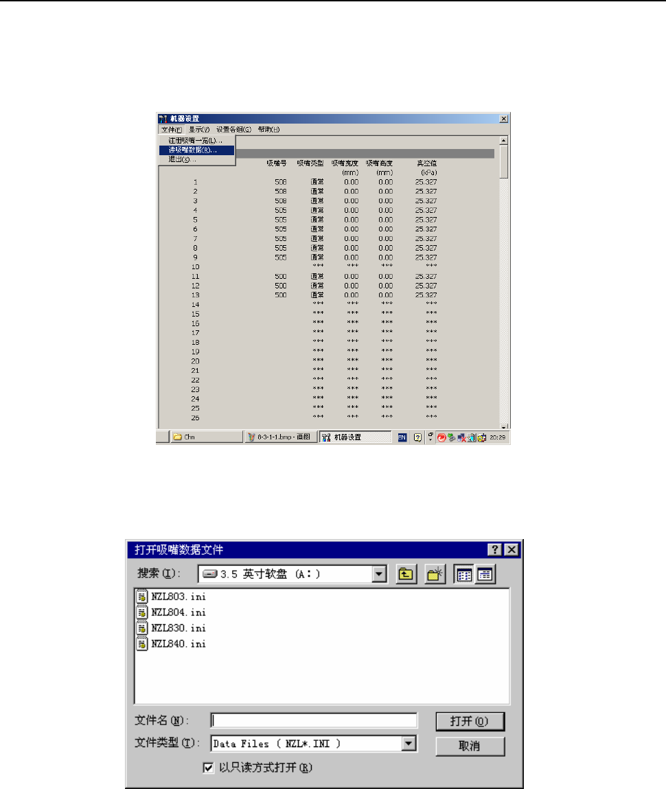 从菜单栏中选择“文件”/“读吸嘴数据”,则会显示“打开吸嘴数据文件”画面。
