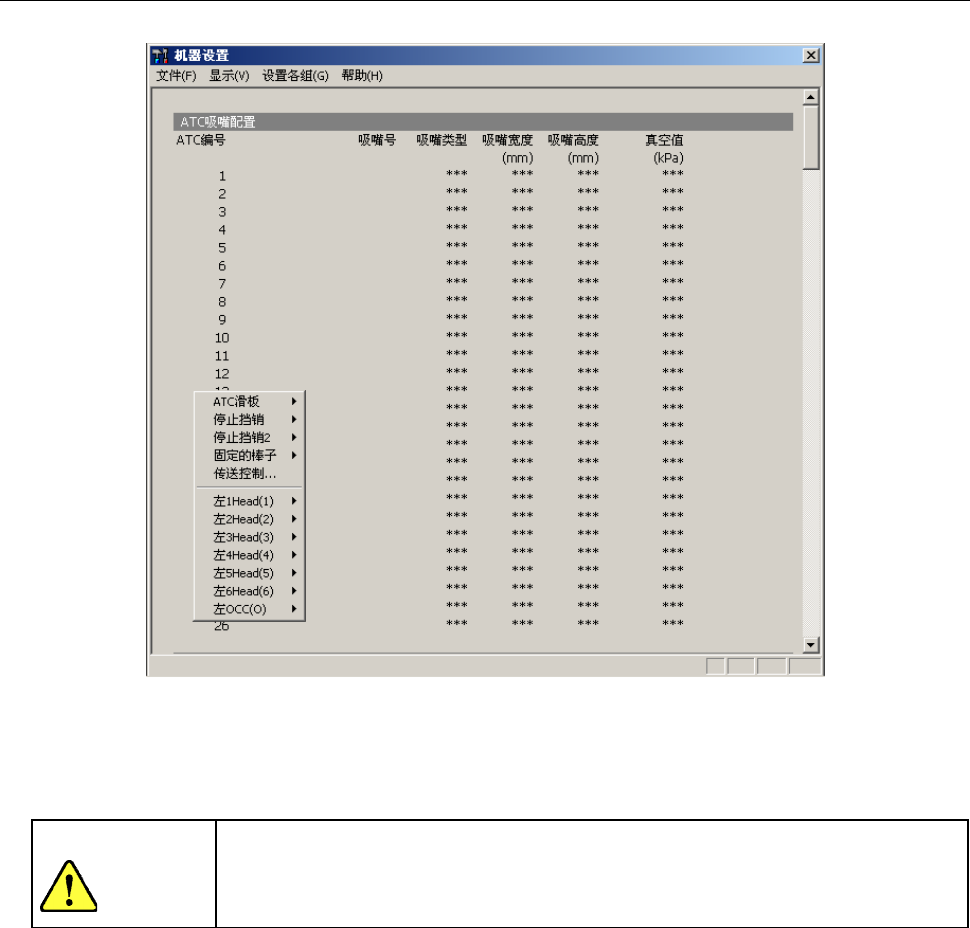 图7-6-1 机器设置的弹出菜单