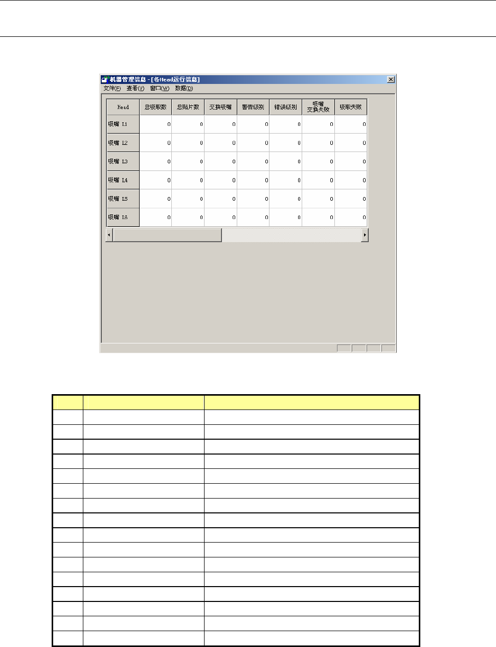从菜单栏中选择“窗口(W)”/“各贴片头的运行信息”,则显示图9-4-1-1。