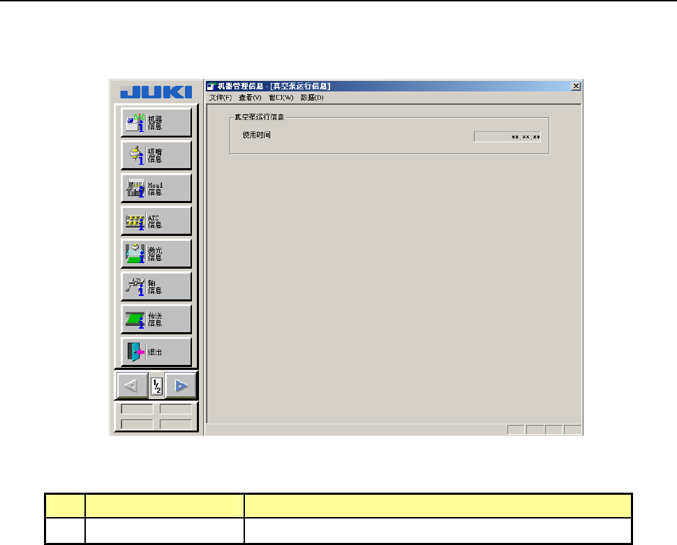 在菜单栏上选择[窗口 (W)]→[其他]→[真空泵运行信息]后,会显示如下真空泵运行信息