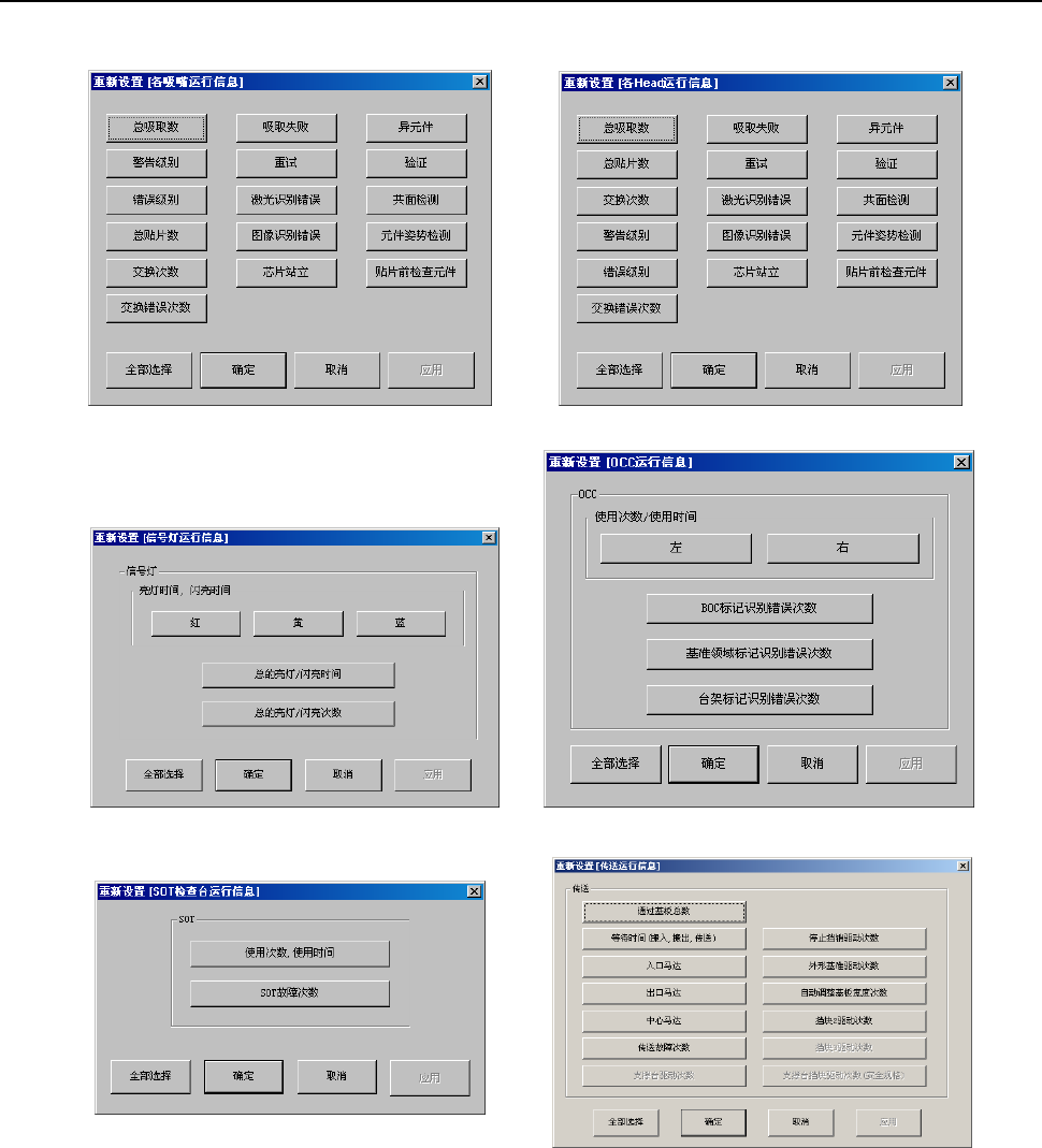 图9-5-17-2-1 重新设置各吸嘴运行信息画面 图9-5-17-2-2 重新设置各 Head 运行信息画面