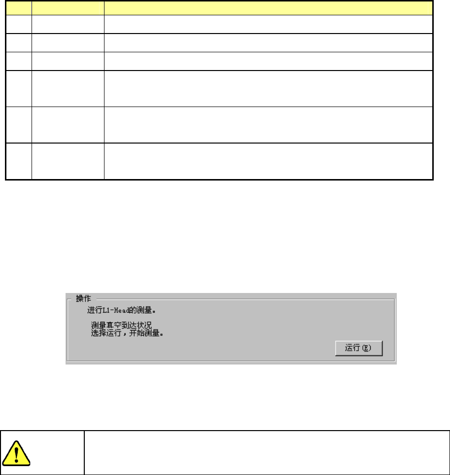 第 2 部 功能详 解篇 第 10 章 自动校准 10-13 测量内容 ① 设定Head将移动到真空校准上,测量3次真空到 达状况。 · 显示第2次与第3次的平均值。 · 测量后所显示的压力值图表为第3次的数据。 ¾ 请选择“运行”。 选择“运行”,则自动测量自然破坏状况。 ② 设定Head将移动到真空校准上,测量3次自然破坏状况。 · 显示第2次与第3次的平均值。 · 测量后所显示的压力值图表为第3次的数据。