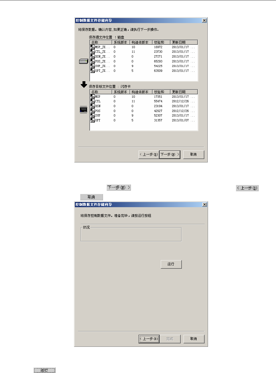 选择“1.把控制数据保存到闪存卡上”后,显示如下的画面。
