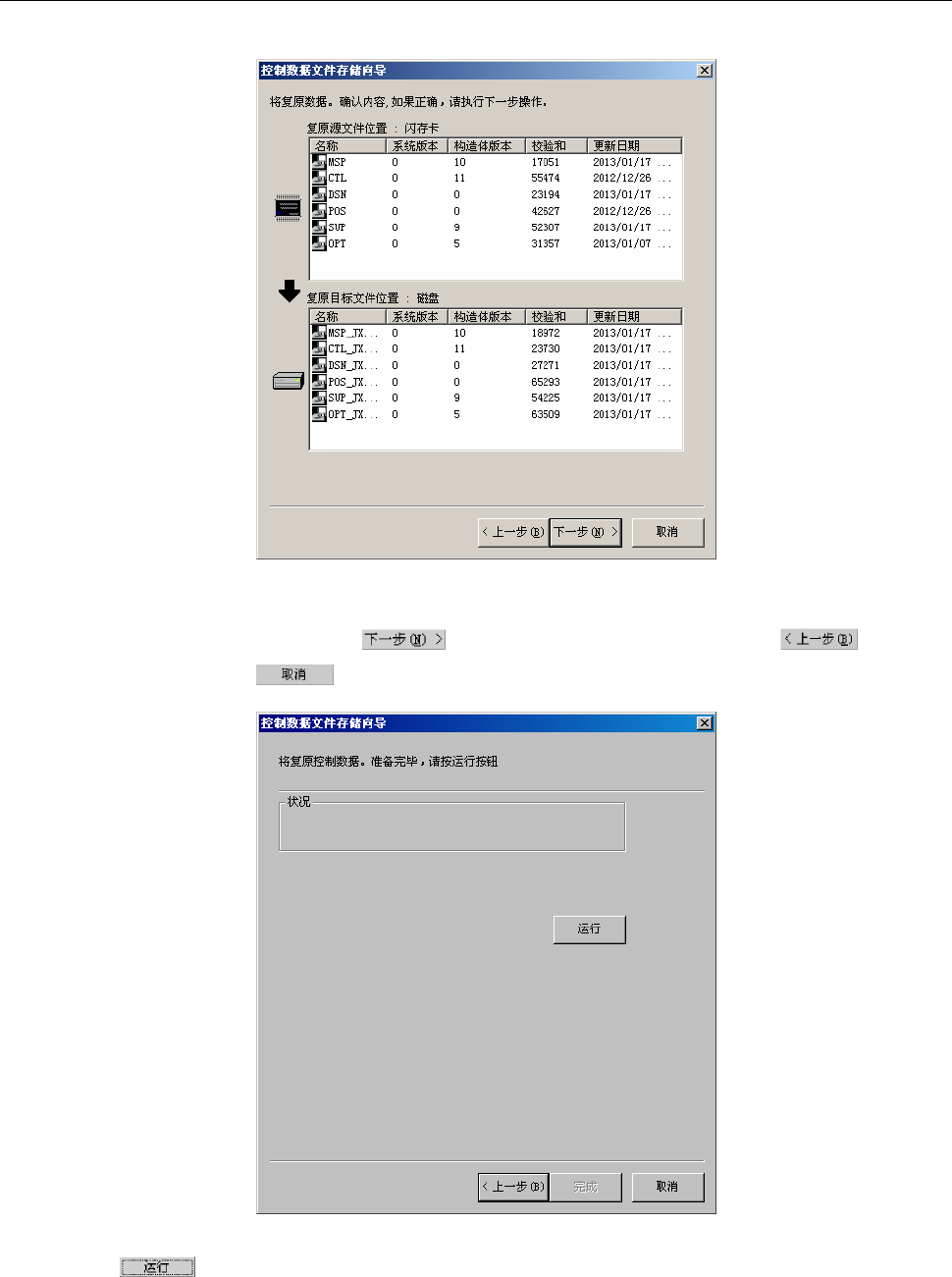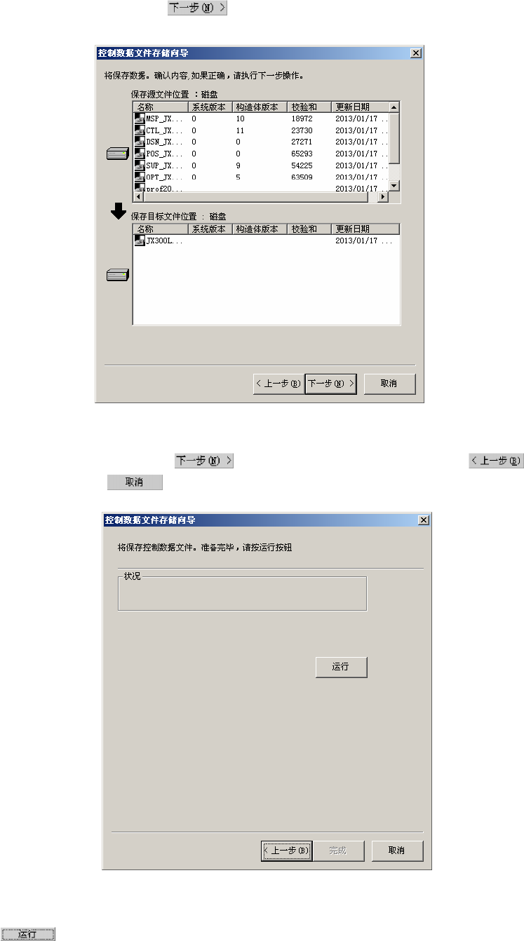 第 2 部 功能详解篇 第 12 章 程序补充 12-22 指定保存目标位置后,按下 按钮,显示如下画面。 (下例为将保存目标位置指定为硬盘时) 图 12-3-3-3 将控制数据文件保存到软盘等的保存画面 确认要保存的内容后,请按下 按钮。 变更操作内容等时,请按下 按钮, 或在作业结束时按下 按钮。 图 12-3-3-4 将控制数据文件保存到软盘等的保存执行画面 用 按钮来保存控制数据。