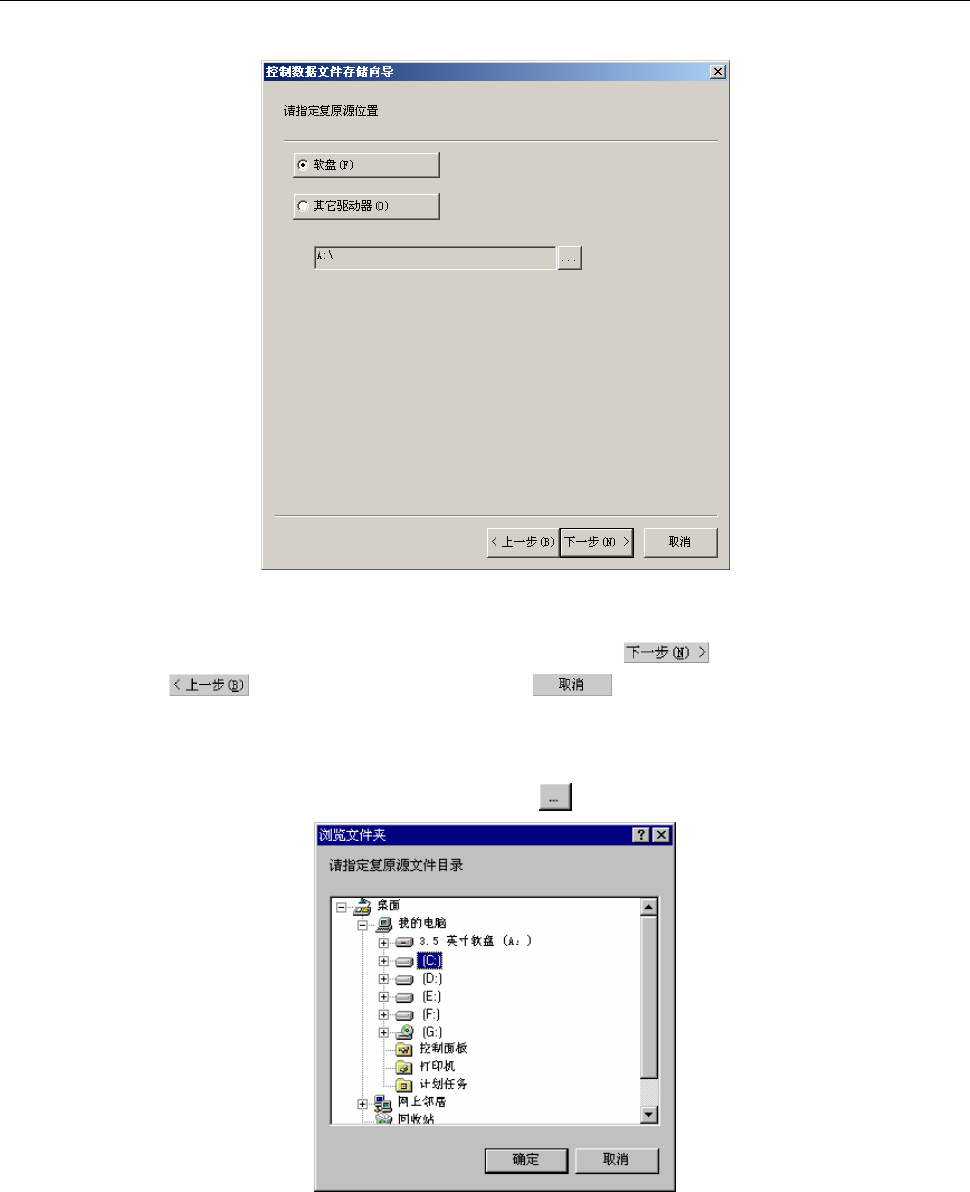 选择恢复源位置([软盘]或[其它驱动器])后,请按下 按钮。变更操作内容等时,