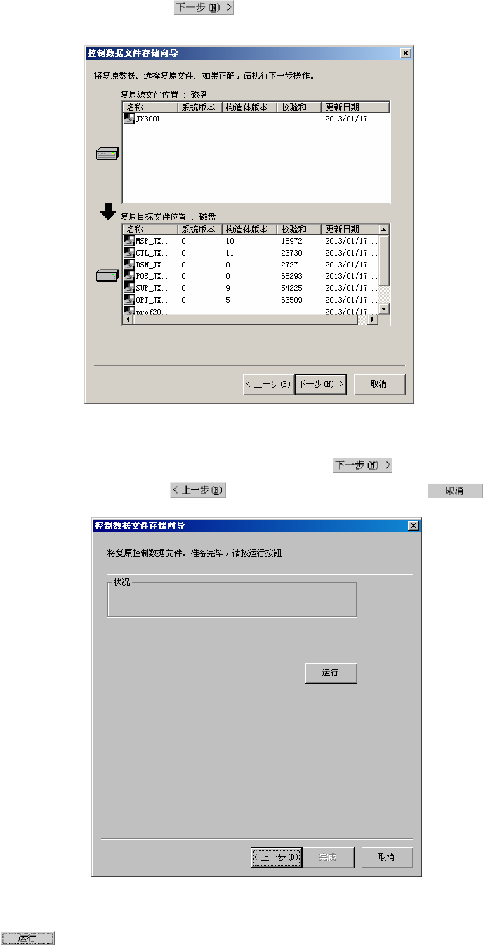 第 2 部 功能详解篇 第 12 章 程序补充 12-25 指定复原源文件位置后,按下 按钮,显示如下画面。 (下例为将保存复原源文件位置指定为硬盘时) 图 12-3-5-3 从软盘等复原控制数据文件的画面 选择复原源文件位置中所显示的可恢复文件后,请按下 按钮。 变更操作内容等时,请按下 按钮,或在作业结束时按下 按钮。 图 12-3-5-4 从软盘等恢复控制数据文件的执行画面 用 按钮来恢复控制数据。