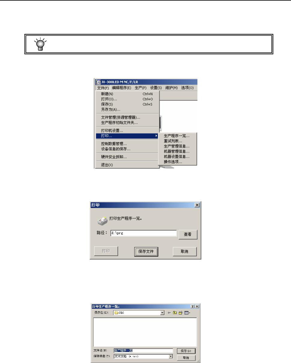 打印保存在指定路径(=文件夹)中的生产程序一览。