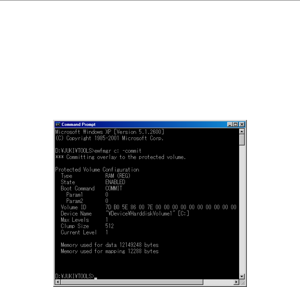 (2)在控制台窗口(Console Window)(DOS 画面)上,输入“ewfmgr C: -commit”。