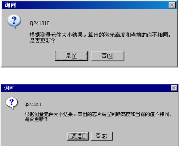 根据尺寸计算出的激光高度或芯片站立判定高度与原来的值不同时,会显示如下询问。