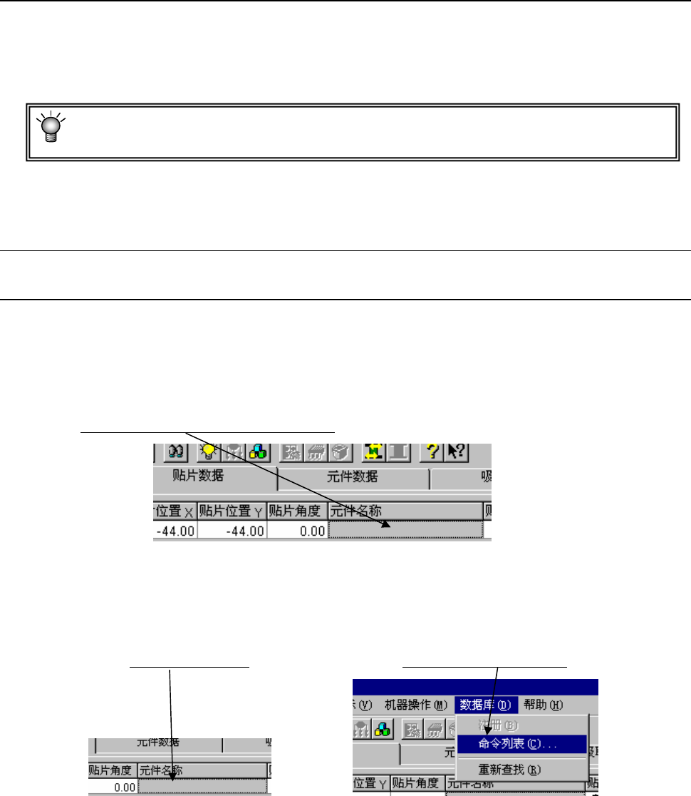 元件名已被注册到数据库时,只要在“贴片数据”中输入元件名,数据库的内容即被注册到正在