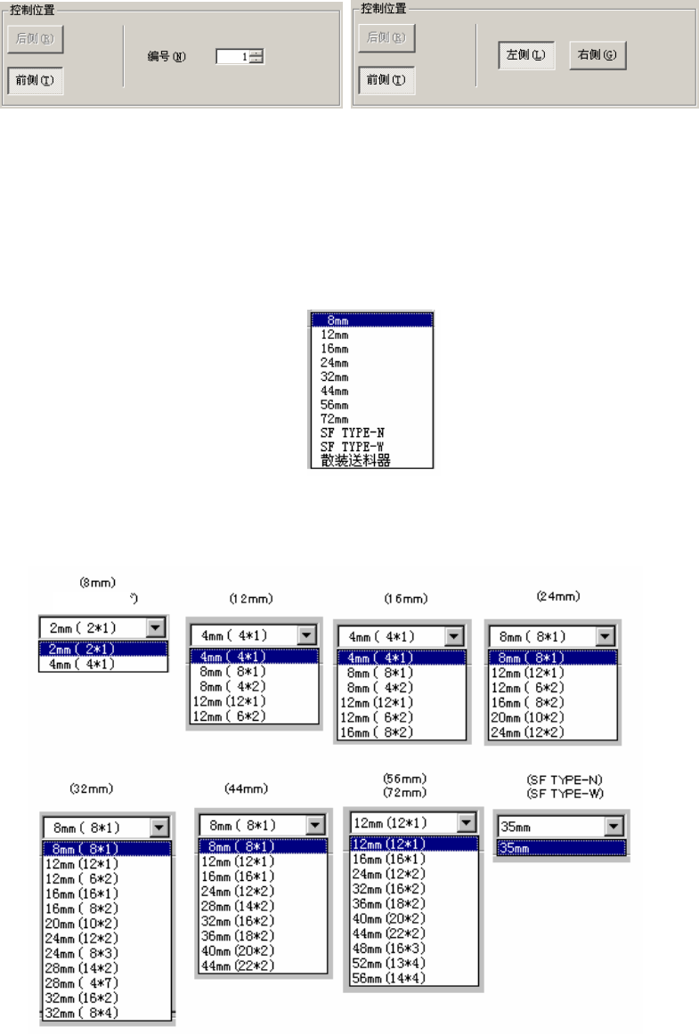 在控制项目中选择了“带状送料动作”时,要在组合框上选择送料带的宽度和间隔。
