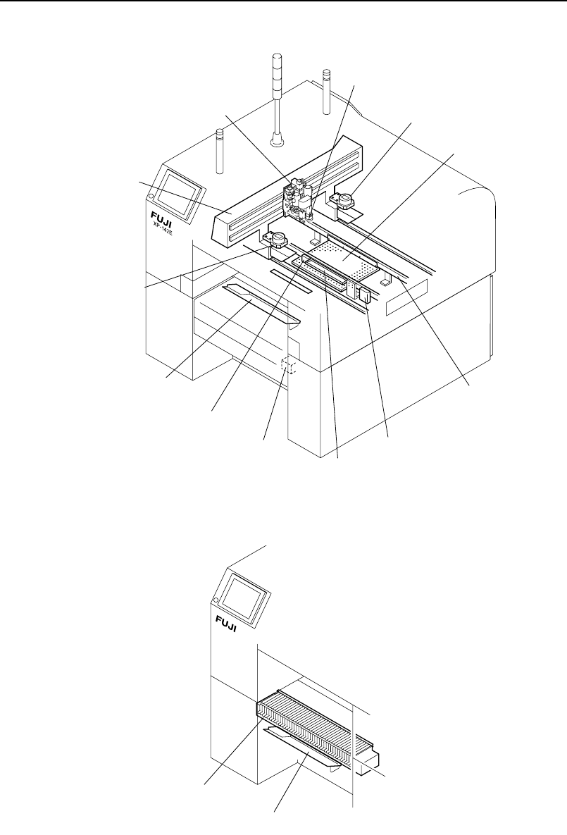 1. Placing head The placing head consists of Z, Q, and R axes, and holds 12 nozzles. 2. XY -robot The XY -robot holds the placing head and moves it between the parts pick-up and placement positions. 3. Parts camera light…