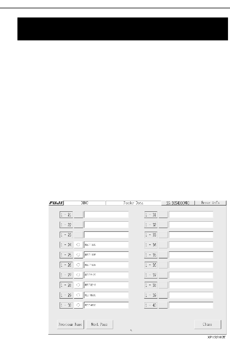 Feeder information is used to verify the part types and slot positions speci-