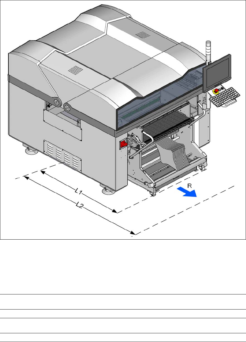 Fig. 3.3 - 7 Distancia de maniobra para la mesa intercambiable en la máquina automática E by SIPLACE