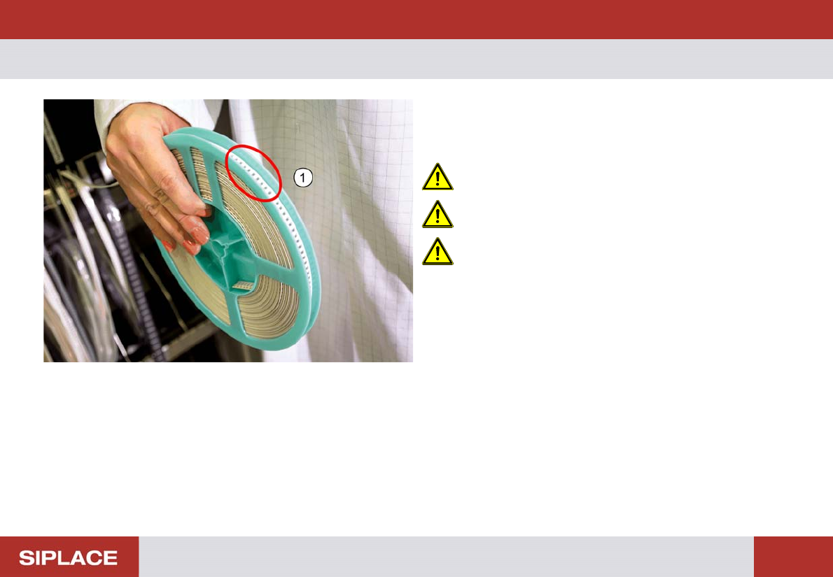 ▪ 将旧料带整齐地卷放在新卷盘上 (1)