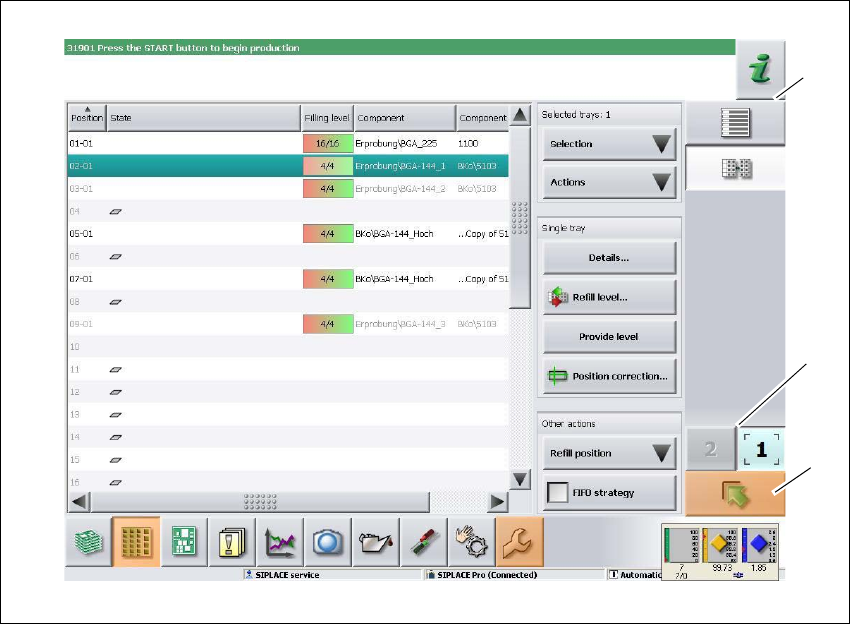 Fig. 5.5 - 4 Componentele panoului de operare în vederea „WPC” (pe exemplul SIPLACE SX2)