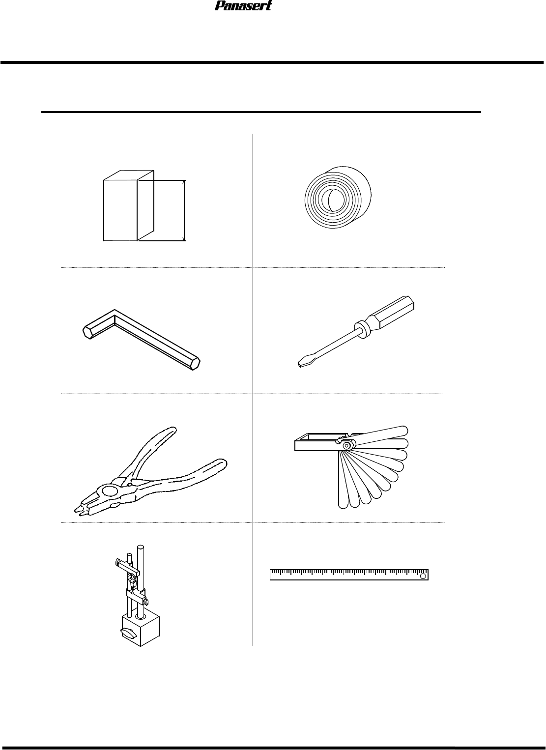 HDF 服务手册 3.1 专用治具工具一览 ( 服务技师用 ) D45SCC-87-030-A0 3.1-2 = 确认 确认 确认 确认 = 不包括附属于机器主体的治具、工具。 弹簧压紧支架: 1048390112 百分表安装用治具: 1048390191 胶嘴高度确认用治具: 1048390193