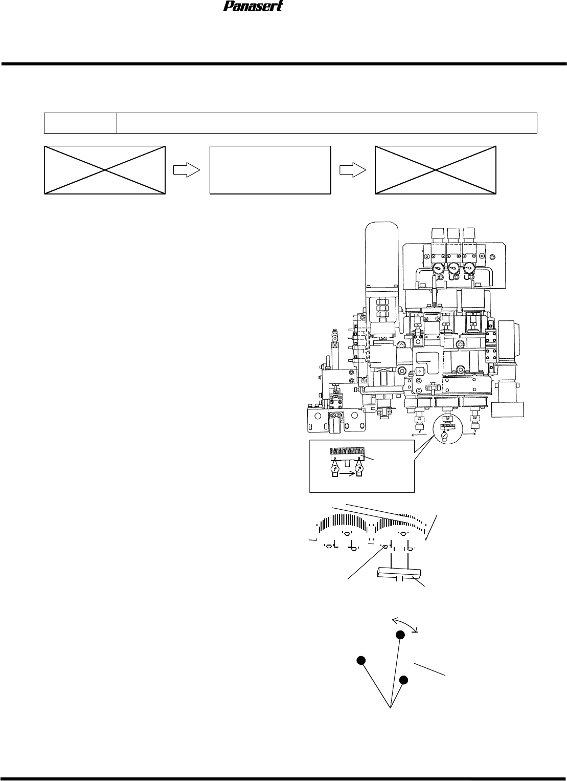 HDF 服务手册 4.4 Robot 头:喷嘴 D45SCC-W 1-D00-A0 4.4-4 12. 再次确认平行度。 13. 如再次在规格值以外, 则拧 松螺栓、锁紧螺母,缓解张力。 14. 卸下 A 处的皮带,错开皮带轮和皮带 的位置。 15. 将皮带安装到 A 位置处。 16. 再次确认平行度。 17. 在 NC 轴移动中,旋转喷嘴 90° 。 18. 使百分表与治具侧面相接触。 19. 确认喷嘴 Y 方向的平行度。 = 规格值…