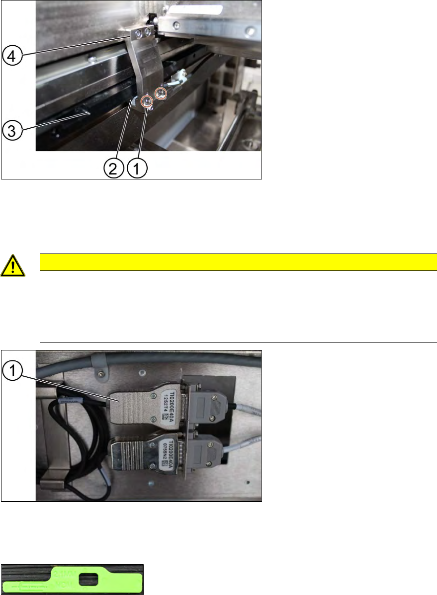 ASM Proces sLens Single - l ane 03/2020 Edit ion 31 3.8 Change the enc oder reader at the x, y and z gantr y Require ment: ● Machine is switche d off . Ke y: 1) Screw (2 x) 2) Encoder Reader 3) Y scal e bar 4) Holder Fig…