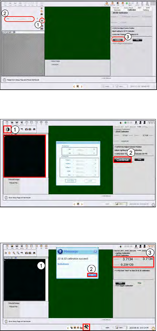 ASM Proces sLens Single - l ane 03/2020 Edit ion 61 Step 7 1. Click on Focus ic on . 2. Adjust to value 5 0~60 . The m achine tak es about 4 0s to adjust the Side 1 a nd Side 2 lighting. T he fring e pattern in the FOV w…