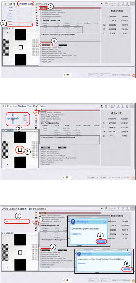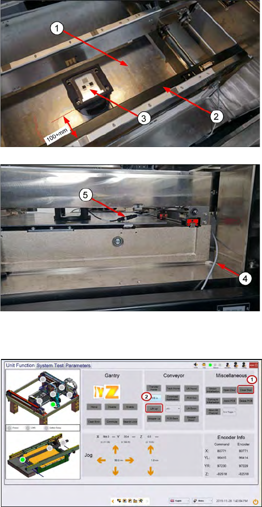 ASM Proces sLens Single - l ane 03/2020 Edit ion 67 Step 3 1. Clean the l ift tab le of an y debris. 2. Pull the sens or bar t owards the front c onveyor. 3. Place the targ et on th e tabl e in the middl e of the co nve …