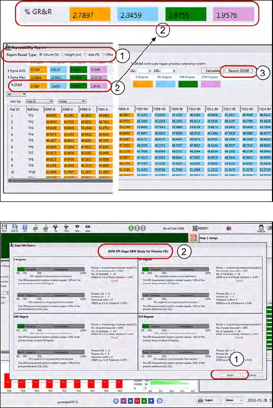 The %GR&R of the Volume(%), Area(%), Height(mm), Offset X and Offset Y(mm) reported at the