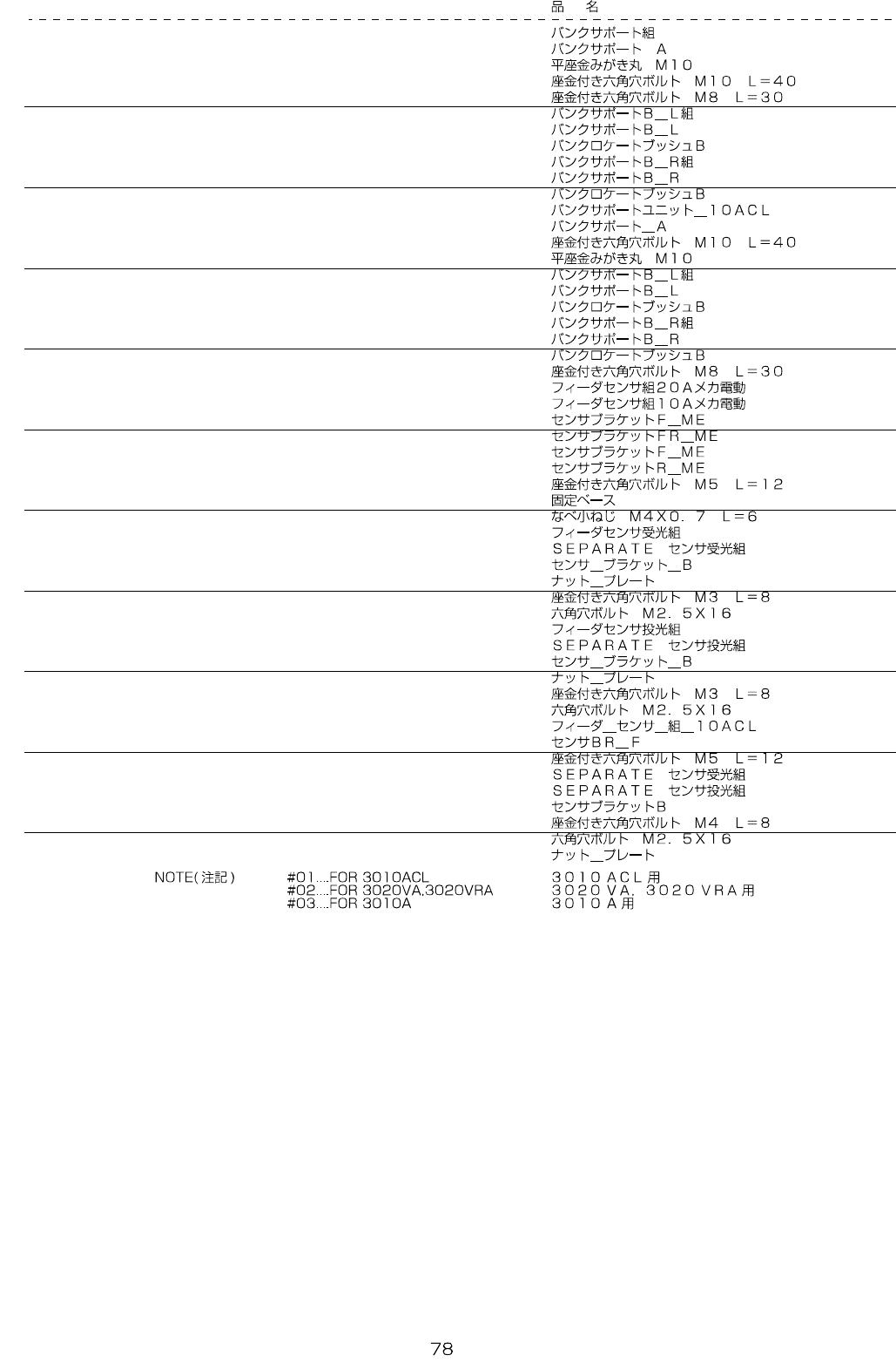 - - REF.NO NOTE PARTNO DESCRIPTION Qty 1 401-47411 BANK_SUPPORT_UN IT 1 2 401-09098 BANKSUPA (2) 3 WP-1052001-SC WASHER10 (8) 4 SL-6104042-TN SCREWM10L=40 (8) 5 SL-6083092-TN SCREWM8L=30 (16) 6 …