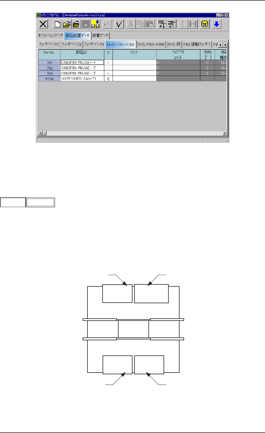 部品配置データのフィーダ番号を示します。