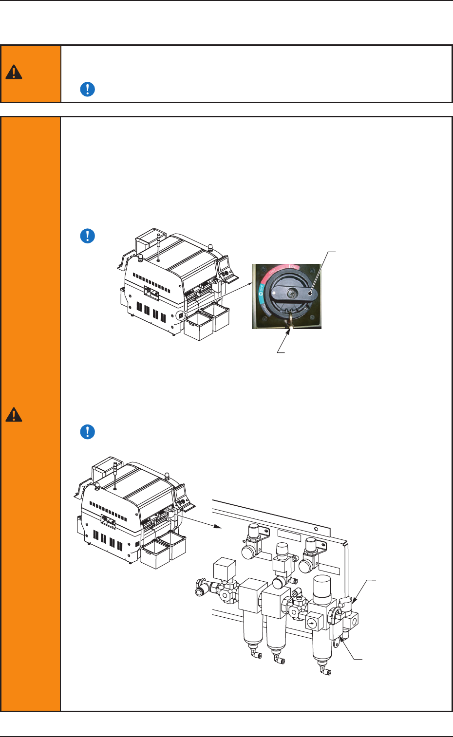 • メンテナンスする場合は、必ず電源およびエア源を切り、電源ブレーカに南京