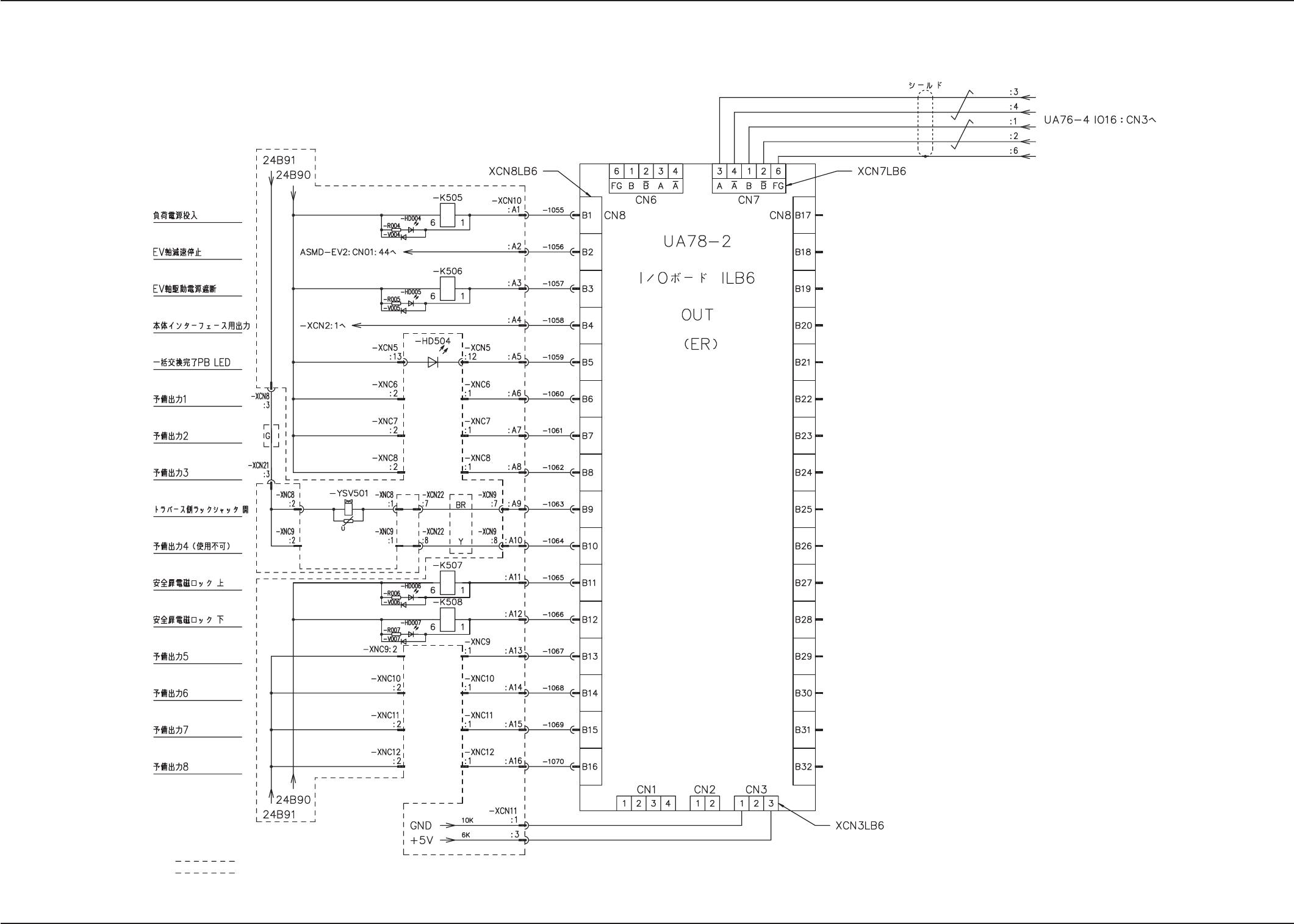 Tg0531-PM-SO 0309-002B(M756WEV--2103) 5-14 4.2 各部の電気回路図 I/O I/O I/O I/O I/O ボード ボード ボード ボード ボード ILB6 (1/2) ILB6 (1/2) ILB6 (1/2) ILB6 (1/2) ILB6 (1/2) ᵈ G ᵈ H ᵈ C ᵈ E ᵈ D ᵈ F ᵈ G ᵈ : C࠼ࡦ✢ࠍࠦࡀࠢ࠲ߩ⇟┵ሶߦታⵝߔࠆߎߣޕ Dធ⌕ᐔဳࠤ…